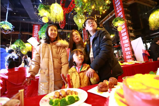 吃團(tuán)圓飯、過文化節(jié)。廣大居民端出自家的拿手好菜,用文化佳肴曬出感恩,曬出幸福,曬出美好的祝愿。617道菜肴寓意著社區(qū)居民沿著中國特色社會(huì)主義金光大道,齊心協(xié)力、共創(chuàng)未來的美好心愿。近1000名居民歡聚一堂,其樂融融,共享美味,共話美好生活,共同祝福祖國日新月異、繁榮昌盛,祝福人民安居樂業(yè)、福運(yùn)昌隆。