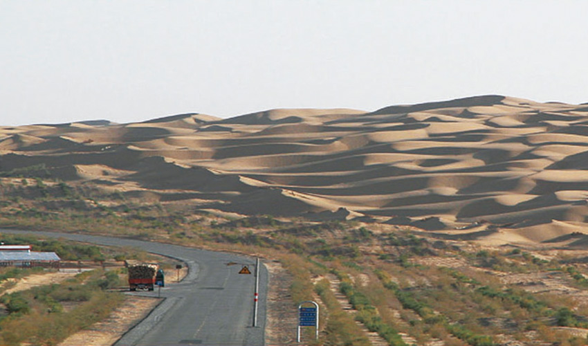 The highway runs across Kubuqi Desert, being 65.5 km in length. In early 1999, with the approval of the government, Elion Resources Group rebuilt the original gravel road into a level II road of asphalt concrete, and the road was open to traffic at the same year.